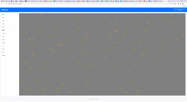 但是这显然不是我们想要的,因为每一个点的运动,似乎都朝向了一个方向,显得很僵硬。原因在于,生成的随机值当然是不一样的,只是这个向量值够小,同时我们更新的时候,只是单纯的add相加的方式,导致了上述的结果。太low。我们想尽可能的,让蝌蚪的运动,逼真化。随机向量的值范围在0-1,我们给个[-1, 1]同时加大幅度10倍,效果如何呢?