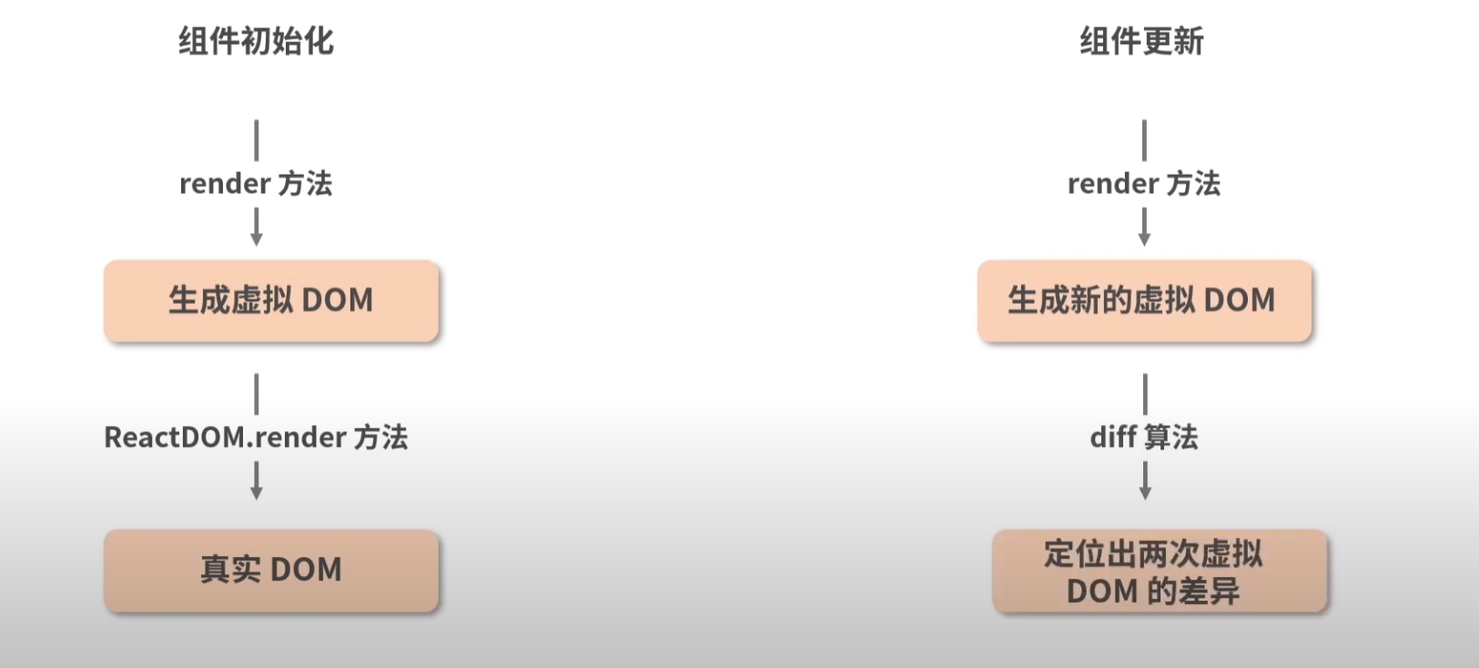 • 初始渲染:JSX 编译为虚拟 DOM → 构建 Fiber 树(可中断)→ 提交阶段创建真实 DOM 并执行副作用(如 useEffect);